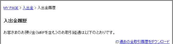 8.入出金のメニューが表示されるので、下にスクロールしていきます。